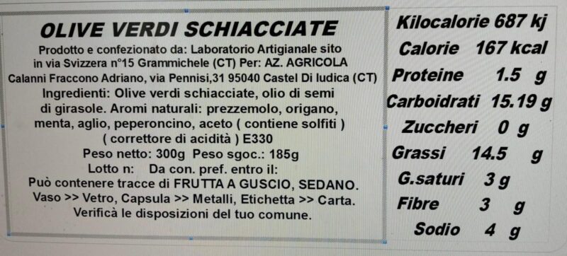 Olive verdi raccolte dalle nostre terre di Sicilia e conservate in vasetti di vetro per essere serviti in tavola, senza l’aggiunta di conservanti preparati con ingredienti naturali.